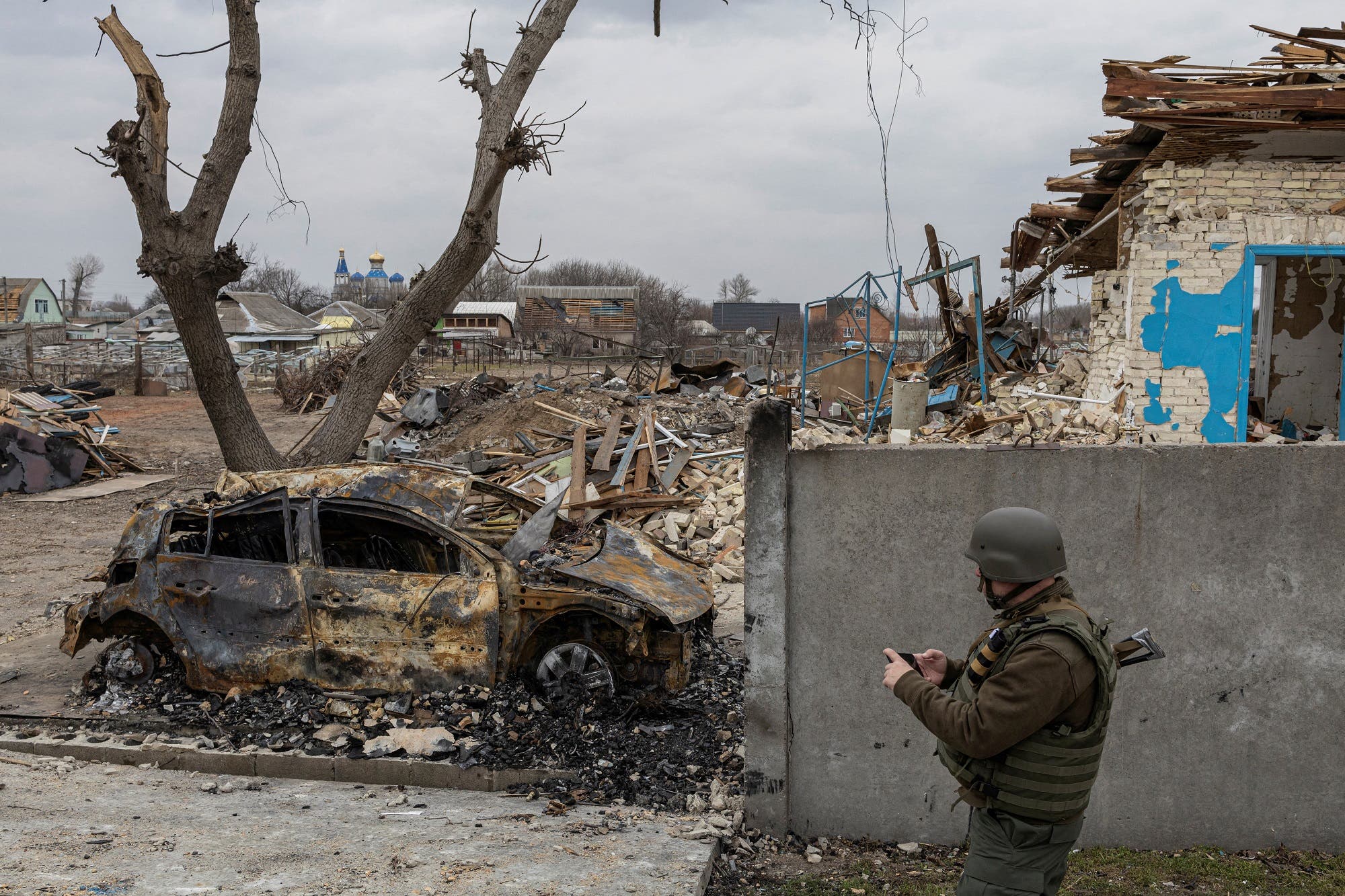 جندي أوكراني في قرية كراسيليفكا خارج كييف (أرشيفية من رويترز)