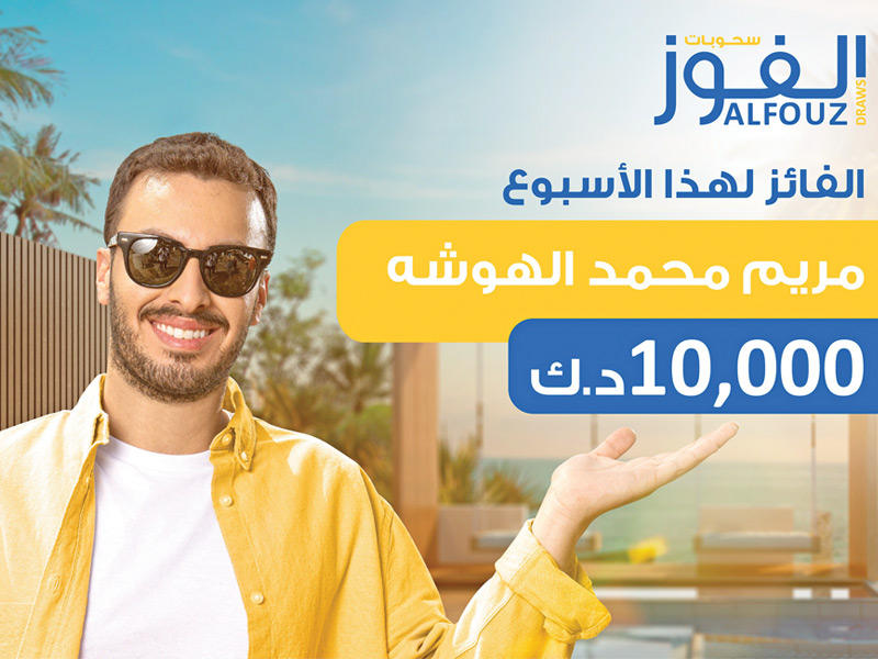 أعلن البنك الأهلي الكويتي فوز مريم محمد الهوشه في السحب الأسبوعي لحساب “الفوز” للجوائز، بجائزة نقدية قدرها 10000 دينار، والذي أقيم تحت إشراف وزارة التجارة والصناعة، وتم الإعلان عن اسم الفائز أمس.,وحساب “الفوز” للجوائز، هو حساب الجوائز الأول من نوعه، والذي يتيح لعملاء البنك الأهلي الكويتي فرصة الفوز بجوائز ومكافآت كبرى، ومن خلال الحساب يحظى عملاء البنك بفرصة الفوز بمبلغ 10000 دينار ضمن السحب الأسبوعي الأعلى لفائز واحد بالكويت، وكذلك فرصة للفوز بالجائزة الكبرى وهي راتب شهري بقيمة 5000 دينار لمدة 10 سنوات، وتجدر الإشارة إلى أنه سيكون بمقدور كل من عملاء “الأهلي” الجدد والحاليين الاستفادة من هذه الفرصة الفريدة في حالة توفر رصيد في حسابهم بمبلغ 100 دينار فقط.