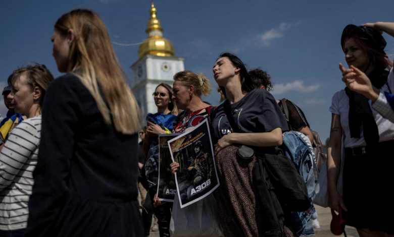 فقد خرج متظاهرون، معظمهم من النساء، في مسيرة في وسط كييف، أمس الخميس، حاملين لافتات مرددين هتافات “أنقذوا المدافعين عن ماريوبول، أنقذوا آزوفستال”، و”المجد لأبطال ماريوبول”، و”أنقذوا جيش آزوفستال”، بحسب ما نقلت رويترز، اليوم الجمعة.