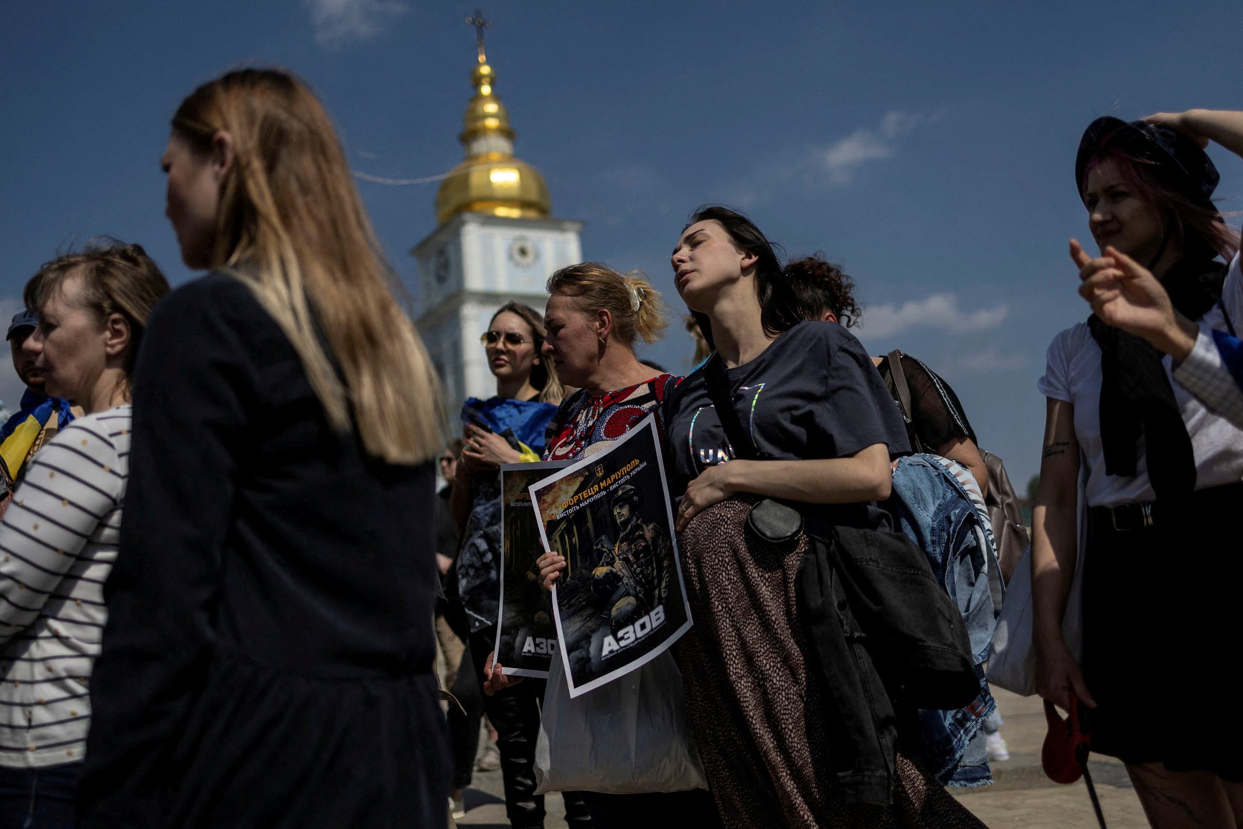 وقالت إحدى المتظاهرات وتدعى ماريا زيماريفا، التي لها قريب بين مقاتلي كتيبة آزوف، باكية “أريد أن يعود جميع المدافعين الموجودين هناك إلى منازلهم حتى يواصلوا حياتهم الطبيعية مع أطفالهم وأقاربهم”.
