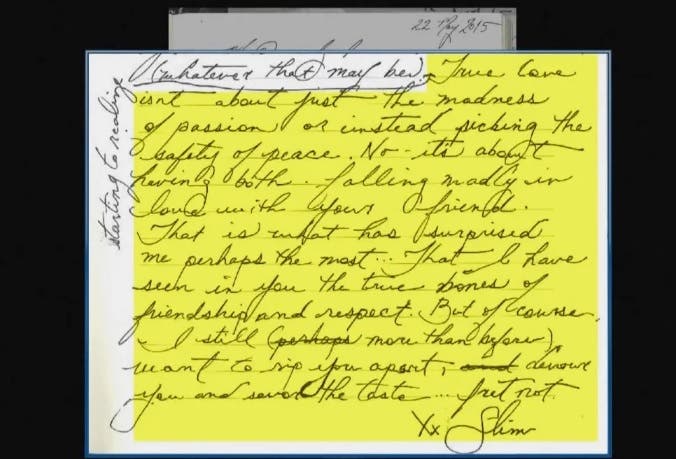 ليتبين أن هيرد كتبت في مايو 2015، أي بعد شهرين من إصابة ديب بجرح في إصبعه نتيجة إلقاءها زجاجة عليه، “الحب الحقيقي لا يتعلق فقط بجنون العاطفة أو اختيار أمان السلام، إنه يتعلق بكليهما”.