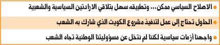 ,واعتبر المضف أن الشعب الكويتي شعب ديموقراطي منذ الأزل وتصلح له الديموقراطية في كل زمان ومكان، موضحاً أن المجتمعات الأوروبية كانت مجتمعات قبلية وطوائف دينية، وكانت الصراعات بينها صراعات دموية لكنها استطاعت الوصول إلى نموذج ديموقراطي كما نراه الآن، ولا فرق بيننا وبينهم، فنحن مجتمع ديموقراطي مسالم مدني، والأزمات التاريخية السياسية شاهدة على هذا الأمر. ,وتابع: لا أحد يقول إن المجتمع الكويتي لا تصلح له الديموقراطية، فمن يقول هذا الكلام لا يصلح لإدارة بلد، ومن يطعن في هذا الشعب يطعن في شعب ارتضى حكم أسرة الصباح، واقتنع بدستور عام 1962. ,وشدد على أن الشعب الكويتي يطالب بحقه في النظام البرلماني، وهو حق أصيل له، وهو من يعطينا نموذج «حسن الاختيار وحسن الإدارة»، فإذا اسقطنا الوضع الحالي فسنجد أن لدينا نظاماً انتخابياً سيئاً جدا يشكل مجلس أمة قائماً على المكونات الاجتماعية وهنا الخطورة بأن يتم تعزيز المكونات الاجتماعية في النظام السياسي فيكون الانتماء للمكون الاجتماعي أكبر وأعلى من الانتماء للدولة، ومن أجل اصلاح تلك الأوضاع لابد أن يتم تغيير «النظام الانتخابي» واختيار نظام انتخابي مبني على البرامج والقوائم وتنظيم العمل السياسي من أجل أن يتم اصلاح الوضع القائم. ,وأضاف: في هذا النظام الانتخابي السيئ، الشعب الكويتي عودنا دائماً في كل الاستحقاقات الوطنية والسياسية بأنه قادر على ايصال العناصر الوطنية والإصلاحية، وتعودنا منه حسن الاختيار، مؤكداً أن الإصلاح ممكن وتحت أي ظرف، والتطبيق سهل بتلاقي الإرادتين السياسية والشعبية في حل المشاكل التي يعاني منها البلد، فيمكن تقديم حلول، لكنها تحتاج إلى عمل وإلى مشروع ويجب أن يتم تطبيق هذا المشروع وإنجازه. ,وأضاف: لقد تشرفت بأن أكون ضمن كتلة نظمت هذا المشروع وهو «مشروع الكويت»، الذي شارك فيه نواب المجلس السابق وتمت الاستعانة بآراء ونواب سابقين في المجالس السابقة، وساهم معنا الشعب الكويتي في سبتمبر العام الماضي في مؤتمر شركاء في الإصلاح والبناء، وقدم لنا رؤاه وأفكاره واقتراحاته وضمناها في هذا المشروع، ومتى ما أنجز هذا المشروع فسوف تحل قضايا الكويت. ,