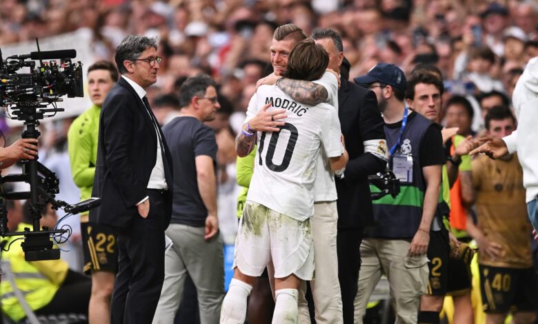 وكان توني كروس من بين الحاضرين لوداع لوكا مودريتش، إذ شُوهد اللاعب الألماني السابق وهو يصافح ويعانق نظيره الكرواتي ويتحدث معه داخل الملعب.