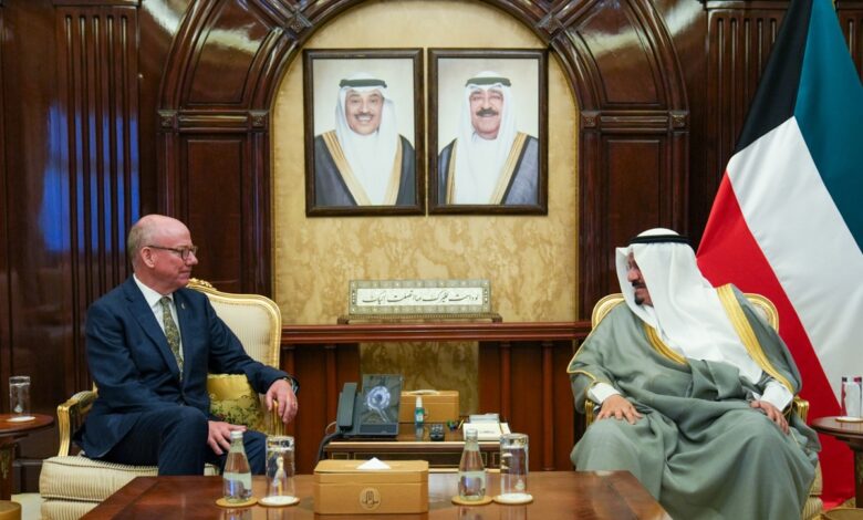 استقبل رئيس مجلس الوزراء سمو الشيخ أحمد العبدالله، في قصر بيان اليوم، نائب رئيس مجلس إدارة مؤسسة الملك في المملكة المتحدة، مايكل جاري، والمدير التنفيذي للتعليم بالمؤسسة، د. سيمون س…