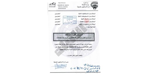 أصدرت وزارة الصحة قرارا جاء فيه: استنادا إلى قرار لجنة التراخيص الطبية، نود الإحاطة بأنه تم اعتماد تسعيرة فحص PCR لفيروس «كورونا» (كوفيد- 19)، على ألا تزيد على 9 دنانير كحد أقصى اعتبارا من الأحد 2/ 1/ 2022.