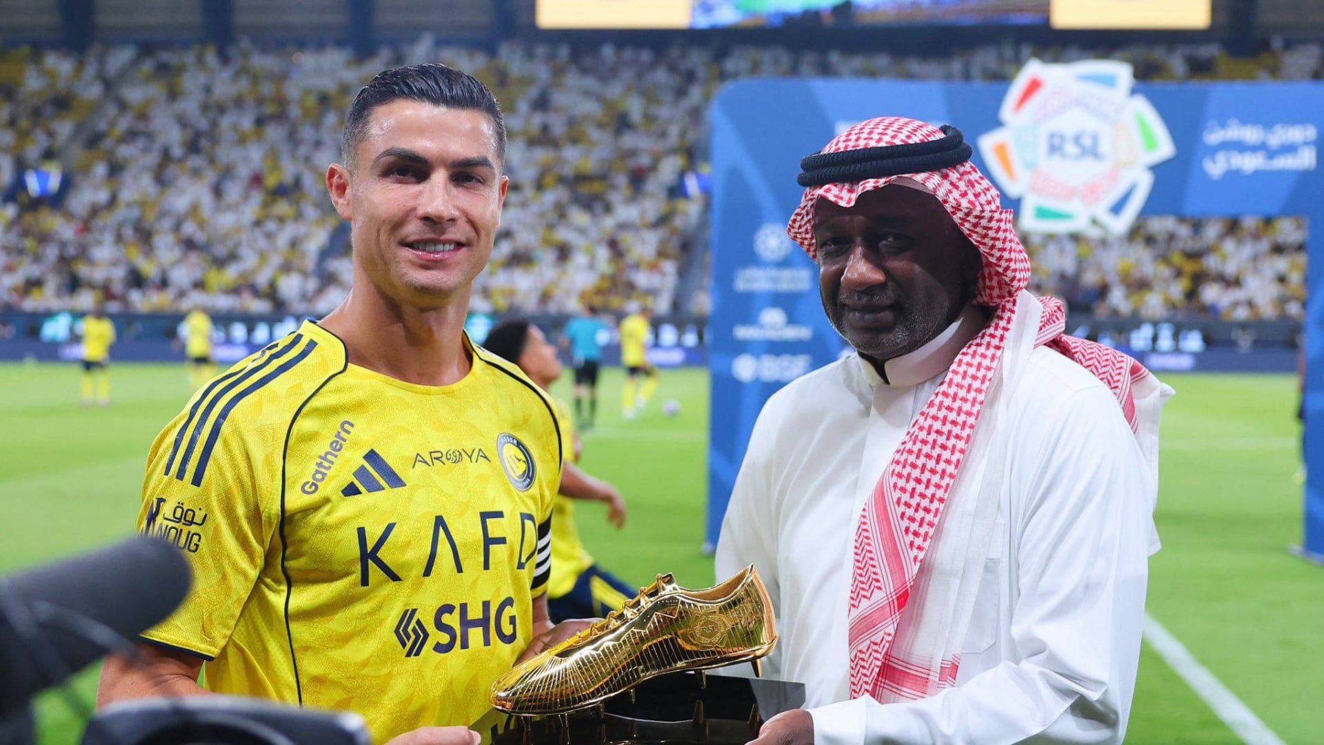 قبل صافرة بداية مباراة بين نادي ونظيره الخلود على أرض ملعب الأول بارك، سلم ماجد عبد الله جائزة هداف الدوري السعودي للمحترفين لموسم 2025/2024 إلى رونالدو.