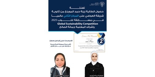 أعلنت وزارة التربية عن فوز الطالبة زينة حمد الموينع من الصف الثاني عشر علمي في ثانوية شريفة العوضي بمنطقة العاصمة التعليمية، بإشراف معلمة الأحياء جمانة سليمان الصالح، بالمركز الثاني عالميا في مسابقة Global Sustainability Competition 2025، وذلك من بين مشاركات طلابية واسعة حول العالم، حيث أقيمت المنافسة بتاريخ 17 سبتمبر 2025 عبر المشاركة الإلكترونية ببحث علمي حمل عنوان: «تأثير درجة حموضة التربة ودرجة حرارتها على ديدان الأرض» ـ The Impact of EarthWorms on Soil pH and Temperature.