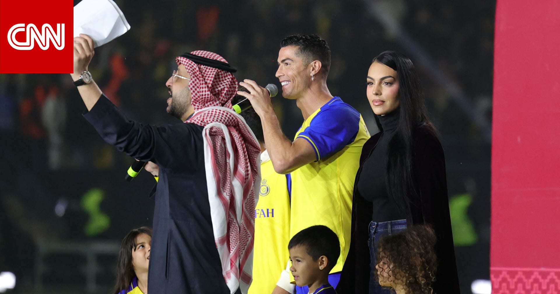 دبي، الإمارات العربية المتحدة (CNN)– تفاعل مستخدمون لمنصة إكس (تويتر سابقًا) مع لقطة مصورة بين النجم البرتغالي كريستيانو رونالدو وصديقته جورجينا رودريغيز وأطفالهما، على هامش مباراة بين ناديي النصر والرياض، السبت.
