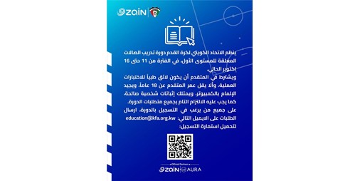 ينظم اتحاد كرة القدم دورة تدريب الصالات المغلقة للمستوى الأول، في الفترة من 11 حتى 16 اكتوبر الجاري.