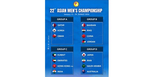أوقعت قرعة البطولة الآسيوية الثانية والعشرون للرجال لكرة اليد والتي تستضيفها البلاد يناير المقبل منتخبنا الوطني في المجموعة الثالثة إلى جانب كل من منتخبات الإمارات وهونغ كونغ والهند، فيما وقع المنتخب القطري على رأس المجموعة الأولى وضمت إلى جانبه كل من كوريا الجنوبية والمنتخب العماني، أما المنتخب البحريني فجاء على رأس المجموعة الثانية بجانب كل من العراق والصين والأردن، فيما حلت اليابان على رأس المجموعة الرابعة إلى جانب ايران والسعودية وأستراليا.