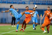 رضا هاني وسامسون أكنيولا يحاولان الوصول للكرة