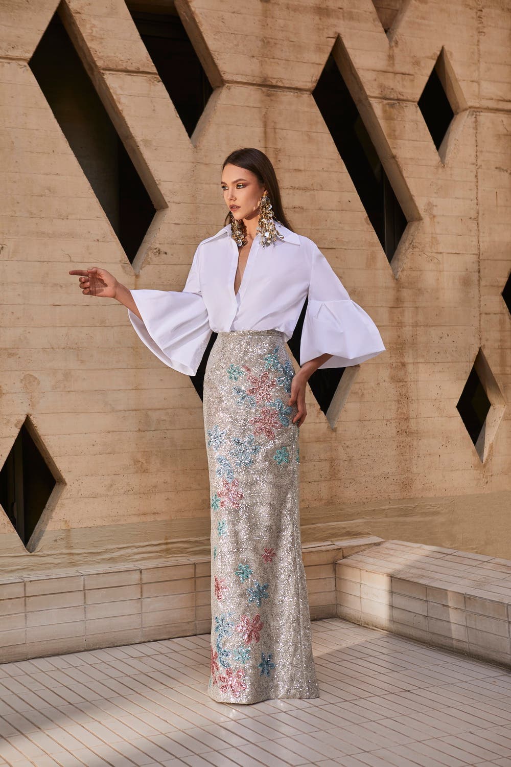 وتضمّنت هذه المجموعة أكثر من 50 إطلالة تنوّعت ألوانها بين الليلكي، والزهري، والأخضر المائي، والتوركوازي، والبيج العاري، والمرجاني، والأسود. وقد تناسقت فيها القمصان البيضاء الكلاسيكيّة مع تنانير طويلة مطرّزة، فيما ظهر “الجامبسوت” بطابع عصري يناسب الأجواء الاحتفاليّة، ودخلت قصة “الكاب” على العديد من الإطلالات بأسلوب متجدد.