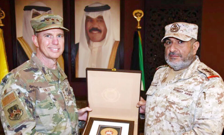 بحث رئيس الأركان العامة للجيش الكويتي الفريق الركن خالد صالح الصباح مع قائد القوات الجوية في القيادة المركزية الأميركية الفريق طيار غروغري جوليت اليوم الأربعاء موضوعات عسكرية مشتركة.