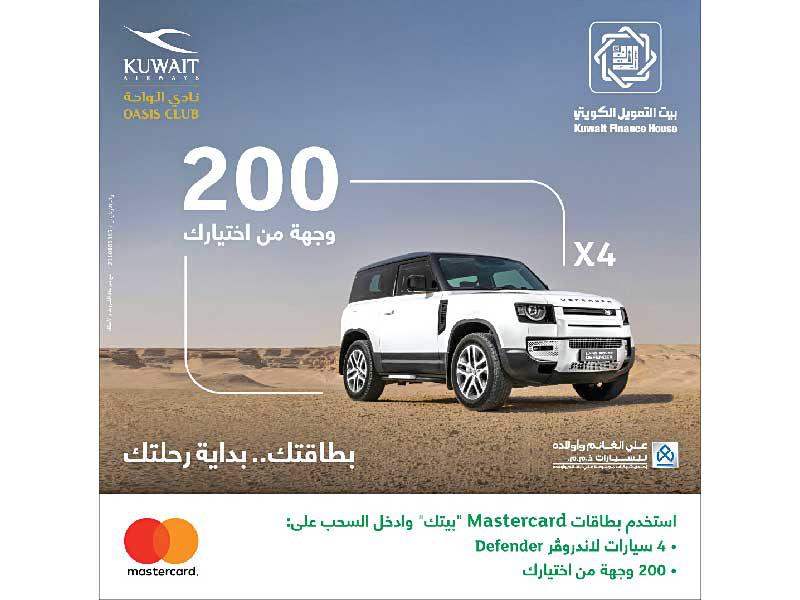 يواصل بيت التمويل الكويتي (بيتك)، حملة “بطاقتك بداية رحلتك” الفريدة من نوعها والمخصصة لحاملي بطاقات “بيتك” ماستركارد، بالتعاون مع ماستركارد والخطوط الجوية الكويتية– نادي الواحة، وشركة علي الغانم وأولاده للسيارات، ضمن إطار الاهتمام بالعملاء، ومنحهم مميزات فريدة، وتعزيز تجربتهم المصرفية. ,وتمنح حملة “بطاقتك بداية رحلتك” جوائز عبارة عن رحلات سفر وفق اختيار العميل، وسيارات لاند روفر (ديفندر) الفاخرة، حيث تتيح فرص الفوز لـ 204 فائزين، لاستخدامهم بطاقات “بيتك” ماستركارد الائتمانية ومسبقة الدفع.,وتشمل عمليات الشراء التي تؤهل العميل لدخول السحب جميع عمليات الشراء عبر بطاقات “بيتك” ماستركارد الائتمانية ومسبقة الدفع محليا وعالميا، بحيث يحصل العميل على فرصة لدخول السحب مقابل كل عملية شرائية محليا بقيمة دينار واحد، كما يحصل العميل على 10 فرص لدخول السحب مقابل كل عملية شرائية عالميا بقيمة دينار واحد. ,وتستمر الحملة حتى 10 فبراير 2022، وتوزع جوائز سحوبات الحملة كالتالي:,- سحب على أميال نادي الواحة، بواقع 200 فائز برحلة وفق اختيار العميل: (50 فائزا شهريا)، سيحصل كل فائز على 50.000 ميل من نادي الواحة.,- سحب على سيارات لاند روفر (ديفندر) الفاخرة: 4 فائزين (فائز واحد كل شهر).,وينفذ “بيتك” ضمن حملة “بطاقتك بداية رحلتك”، برنامجا متكاملا من الفعاليات والأنشطة للعملاء والمجتمع، ويتضمن البرنامج مسابقات وجوائز مختلفة وفعاليات مبتكرة. ويساهم ربط الجوائز بإمكانية الاستخدام داخل الكويت وخارجها في تشجيع استخدام البطاقات بالسوق المحلي، وينشط مبيعات التجار، ويحقق المصلحة المشتركة لـ”بيتك” ولشركائه: ماستركارد والخطوط الجوية الكويتية– نادي الواحة، وشركة علي الغانم وأولاده للسيارات، وبكل تأكيد يشكل قيمة مضافة لتجربة العميل في التسوق وفي الخدمات المصرفية، وهو الهدف الأساسي لـ”بيتك” تجاه عملائه.,ويؤكد “بيتك” حرصه على تعزيز التعاون مع الشركاء لتخطيط وتنفيذ العديد من الحملات، لما لذلك من مردود إيجابي على مستوى رضا العملاء ومعدلات الاستخدام وتوسيع الحصة السوقية لـ”بيتك”، وتعزيز ريادته في سوق البطاقات المصرفية بأنواعها المختلفة.