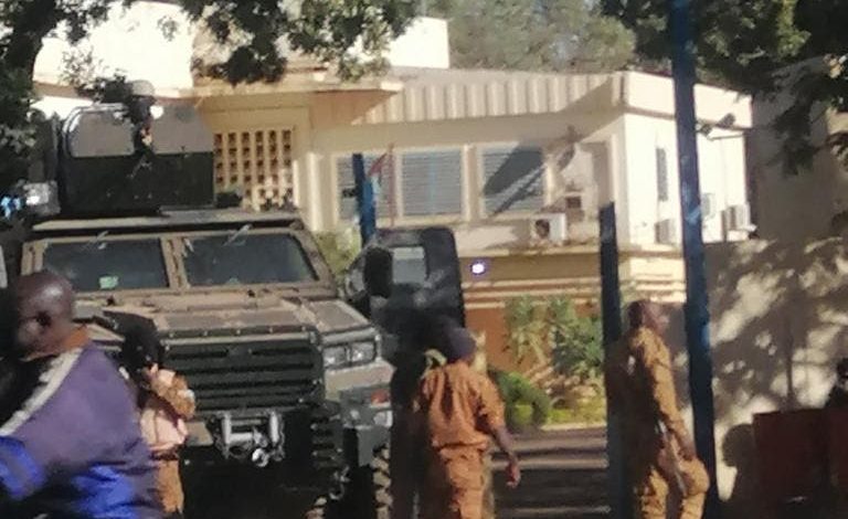 وتمركز جنود ملثّمون في واغادوغو اليوم الاثنين أمام مقر تلفزيون بوركينا فاسو الرسمي. ولم يتضح بعد إن كان هؤلاء الجنود من المتمرّدين قدموا للسيطرة على مقر إذاعة وتلفزيون بوركينا فاسو، أم أنهم جنود موالون للحكومة انتشروا لحراسته.